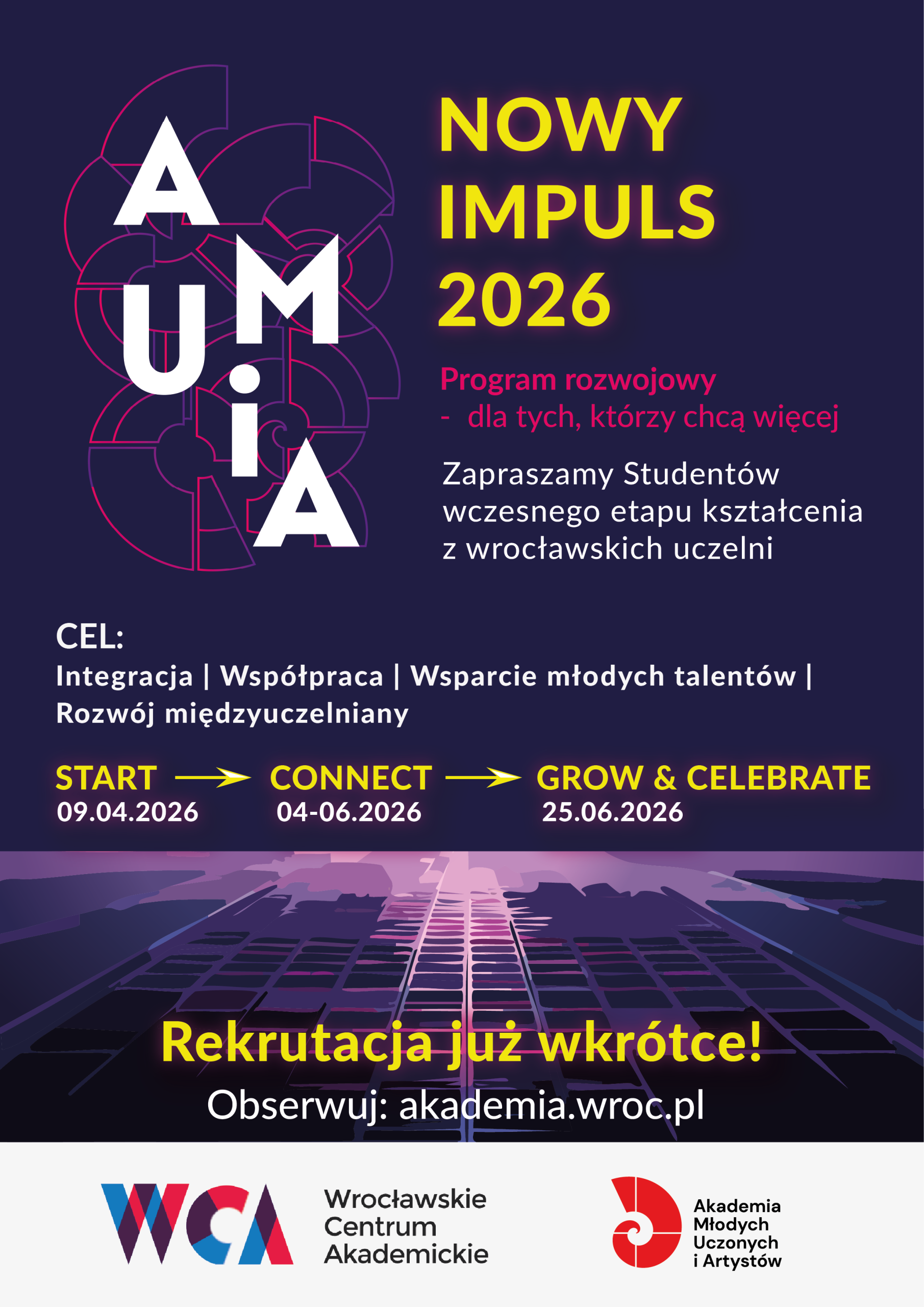 Akademia Młodych Uczonych i Artystów we Wrocławiu, działająca przy Wrocławskim Centrum Akademickim, uruchamia nowy program rozwojowy Nowy Impuls 2026.